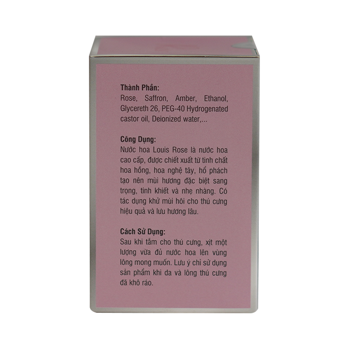 HDSD: Sau khi tắm cho thú cưng, xịt một lượng vừa đủ nước hoa lên vùng lông mong muốn.