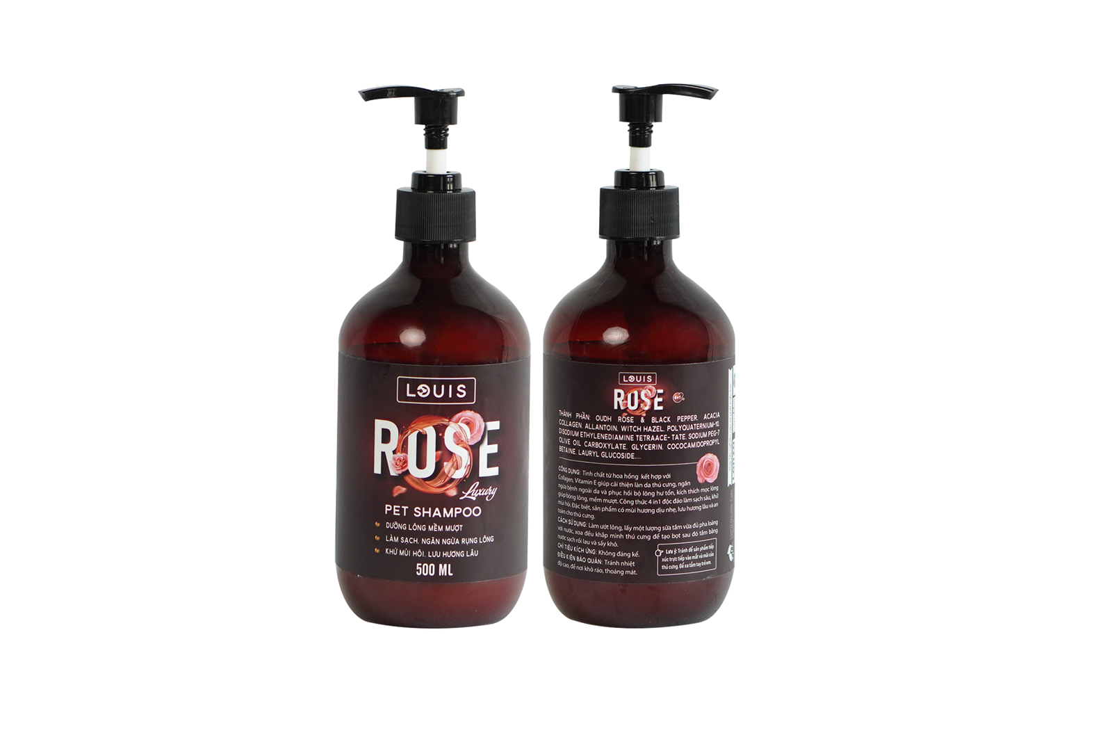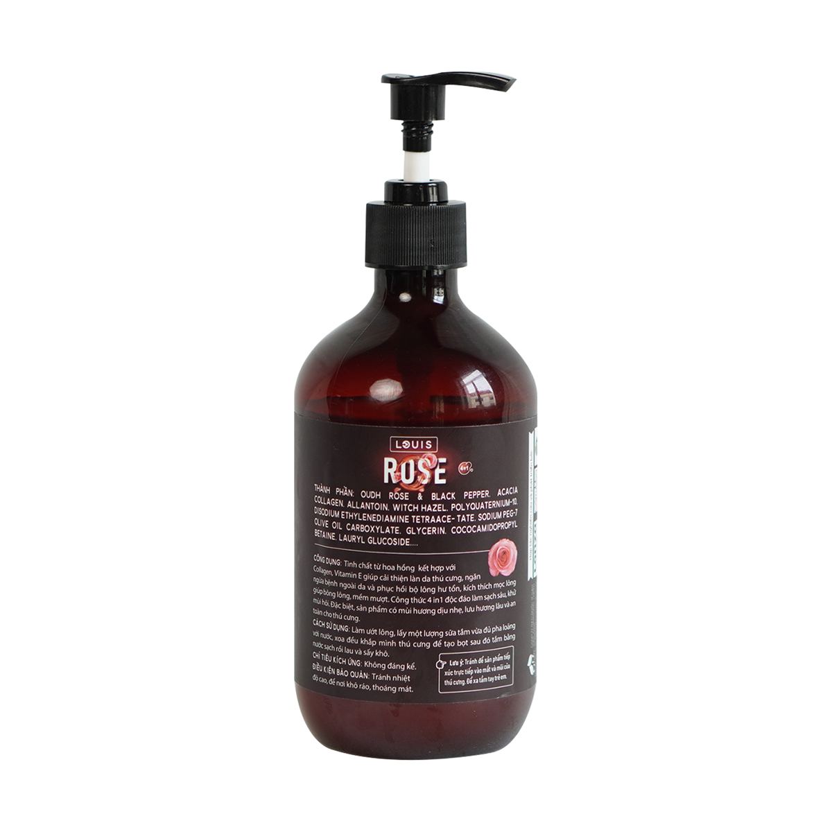 + Bổ sung thêm tinh chất hoa hồng, collagen & vitamin E giúp dưỡng ẩm cho da & lông mềm mại