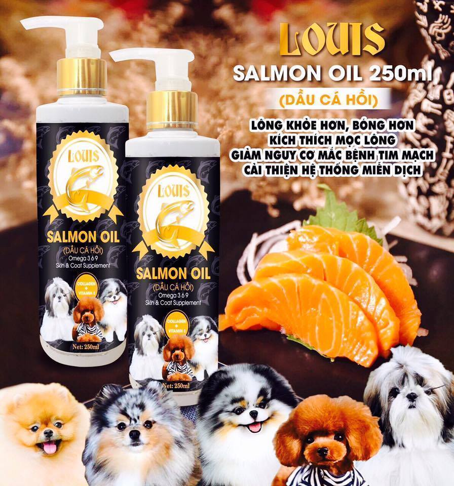 Dầu cá hồi Louis với nguyên liệu nhập khẩu từ Nauy, bổ sung thêm vitamin EDA và collagen,... dầu cá hồi Louis sẽ giúp bổ trợ toàn diện cho sức khoẻ của cún.