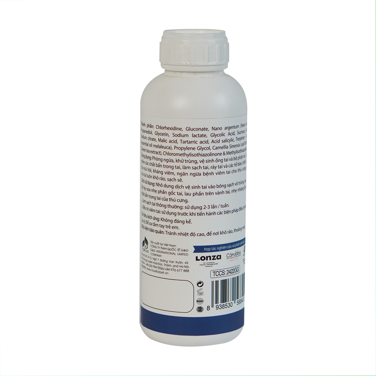 Thành Phần: Chlorhexidine, Gluconate, Nano argentum (Nano bạc), Propanediol, Glycerin, Sodium lactate, Glycolic Acid, Sucrose, Urea, Sodium citrate, Malic acid, Tartarric acid, Acid salicylic, Terpinen – 4 ol (essential oil melaleuca), Propylene Glycol, Camellia Sinensis Leaf Extract (Green tea extract), Chloromethylisothiazolinone & Methylisothiazolinone.